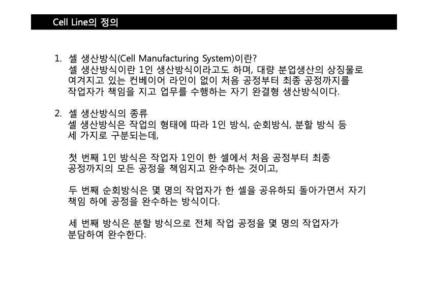 셀 생산방식 (뚝딱 생산방식)은