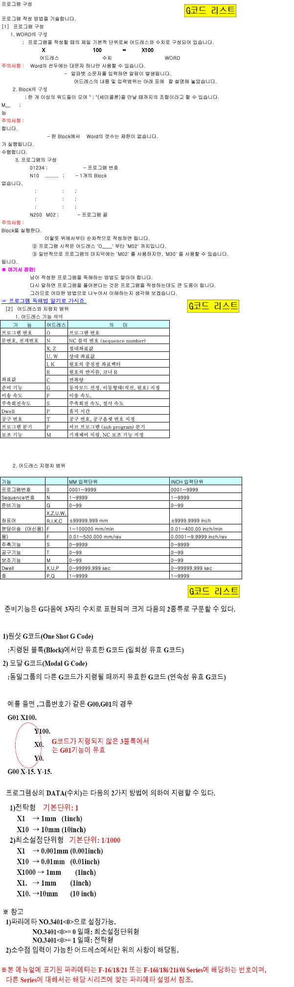 | ☆G00 | 1 | 급속위치결정 | G00 G90 X_ Y_ Z_ | |