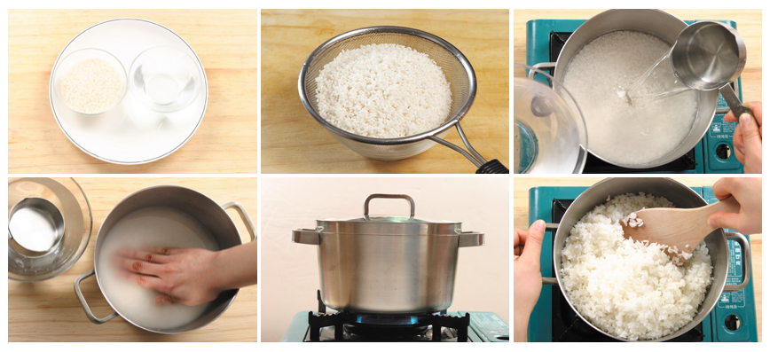1. Poner el agua y el arroz en una olla. 【Fotos 3 & 4】