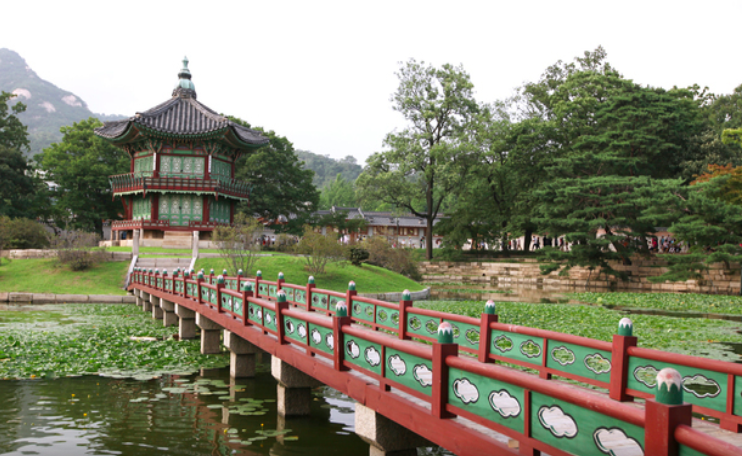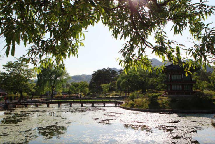 Gyotaejeon eran los aposentos de la reina, y el muro y la entrada posterior, que dan al monte Amisan, son particularmente atractivos a la vista. Además de esto, lo que acentúa aún más la elegancia del palacio Gyeongbokgung son sus estanques de flores de loto, Gyeonghoeru y Hyangwonjeoung.
