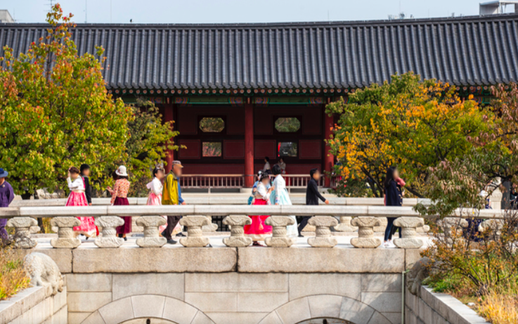 Gyeongbokgung fue el palacio principal durante la dinastía Joseon (1392-1910). Es uno de los cinco palacios de Seúl y ostenta 600 años de historia. Fue edificado en 1395 por el monarca que fundó la dinastía Joseon, Lee Seong-Gye, cuando trasladó la sede de la capital de la era Goryeo hasta Seúl. Al estar situado en la parte norte de Seúl, solía ser llamado también como “Palacio del Norte”.