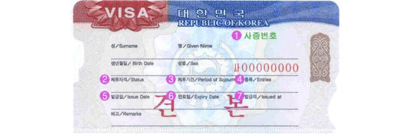 Muestra del visado emitido por la República de Corea